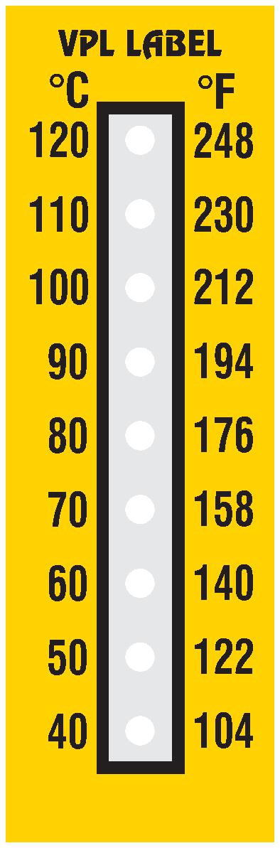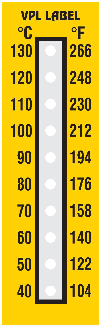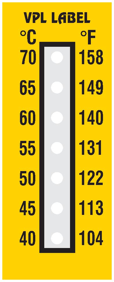 A simple, cost effective and accurate temperature measurement can be made using VPLITPL’s Irreversible temperature sensing strips/labels (VPL Label).